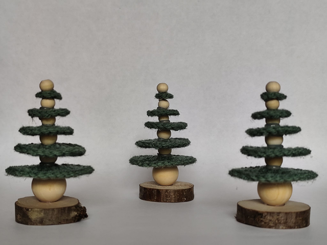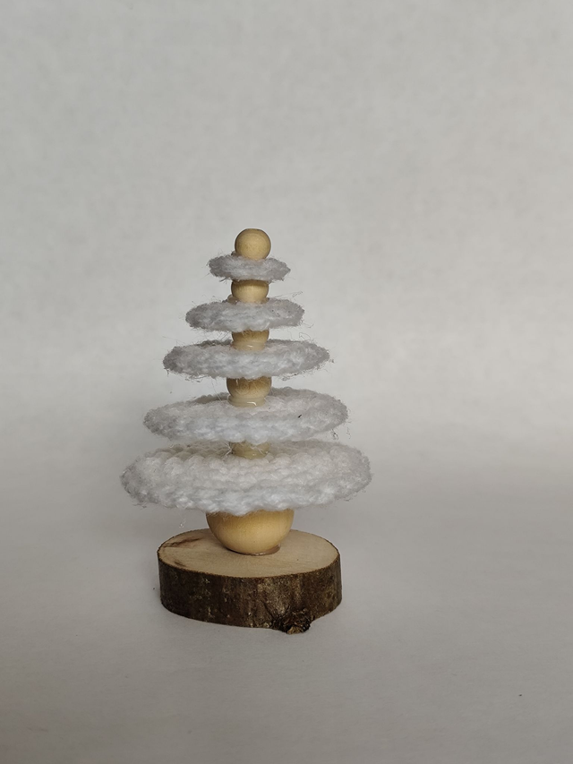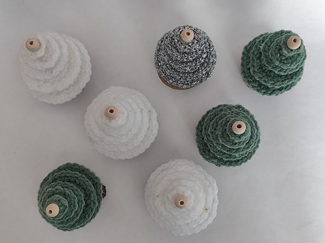 Très jolis petits sapins au crochet et en bois à poser en décoration ou à offrir ! Du plus bel effet sur une table de Noël ou une bibliothèque ! Environ 8 cm de hauteur